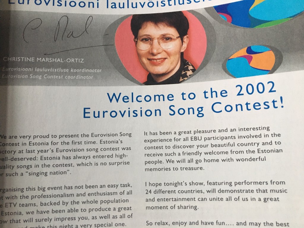 The contest in 2002 was in the intriguingly named Saku Suurhall, an 11,000 capacity concert/ice rink/baseball arena on the outskirts of Estonia’s beautiful capital, Tallinn.