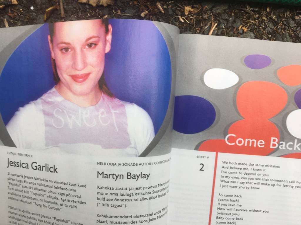 I do remember my ticket cost about £200 and that the UK entry was a song called ‘Come Back’ performed by a 21-year-old called Jessica Garlick, star of the then highly ranked TV series Pop Idol.