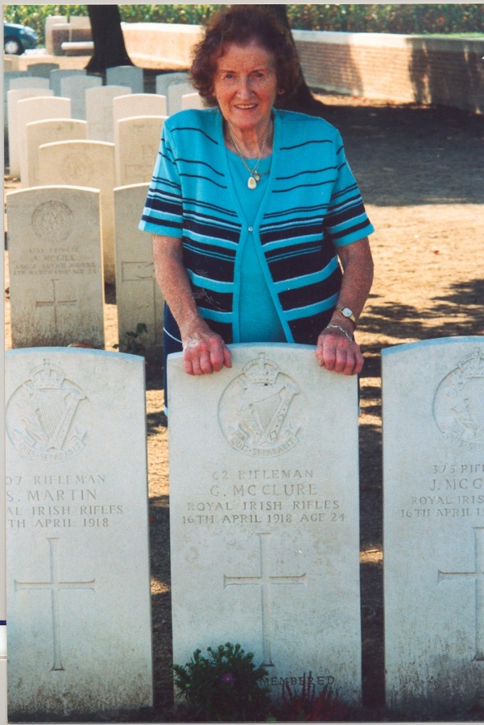 It’s now almost 30 years since I first visited the last resting place of my Great Uncle, Rifleman George McClure from Moira. I can vividly remember the excitement as we pulled up at the cemetery for the first time, identifiable with its six distinctive trees of Canadian Maple, then hurriedly leafing through the logbook at the entrance and almost running to the far end of the plots to see for the first time the last resting place of a family member whose tragic death in 1918 had been a mystery to his family, not least of all to his sister, my grandmother.